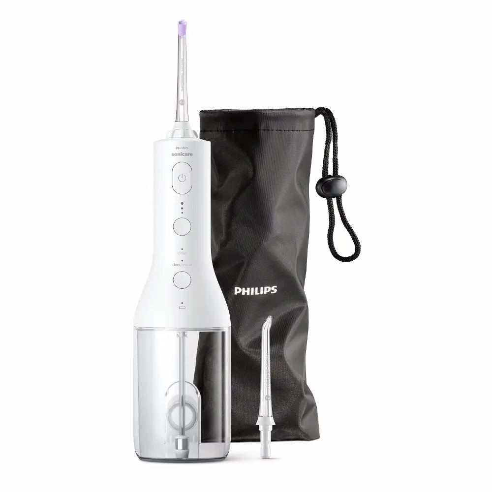 Ústna sprcha Philips HX3826/31 Sonicare Cordless Power Flosser s objemom 250 ml je bezdrôtová a vodotesná, takže ju môžete používať v sprche. S plne nabitou batériou vydrží až 14 dní. Súčasťou balenia je aj praktické cestovné puzdro.